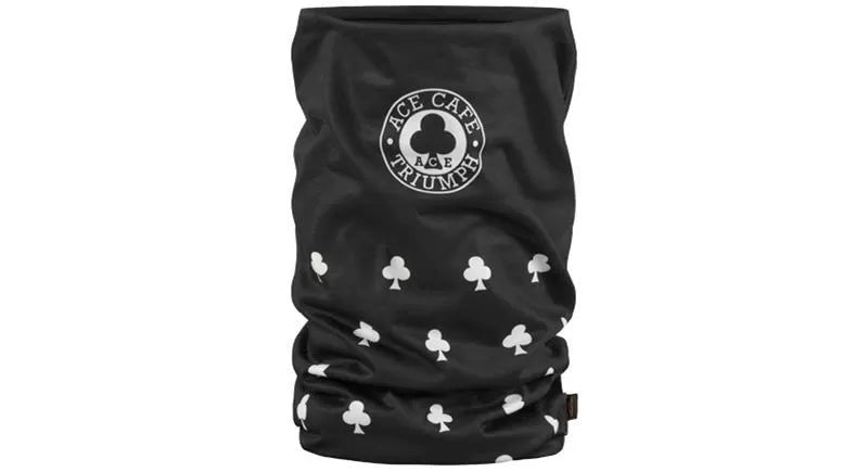 The Ace Cafe Triumph neck tube is constructed from two layers of soft stretch fabric and features digitally printed graphics at the outer.