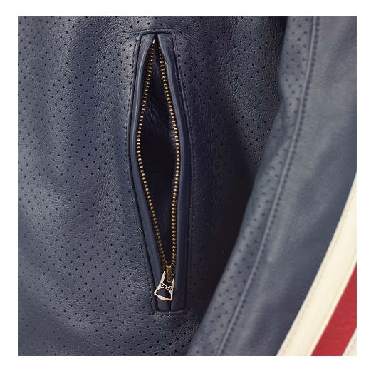 The Braddan Air Race Jacket in Blue combines timeless style with modern functionality, designed for the discerning Modern Classic Rider. Its meticulously perforated construction offers enhanced airflow, ensuring comfort without sacrificing safety. This jacket delivers a refined riding experience by seamlessly blending classic aesthetics with practical ventilation.