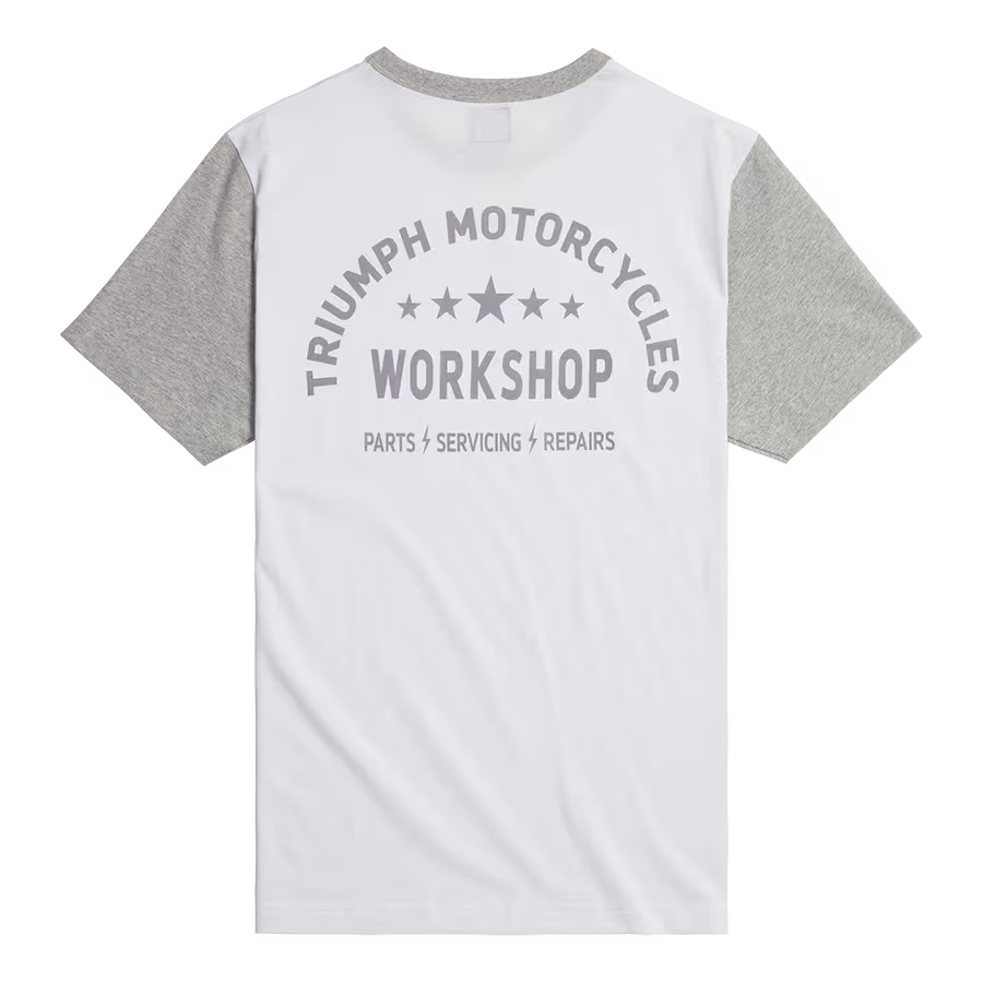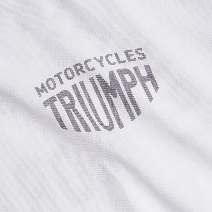 Classic design with monochrome style. Featuring moto-inspired Triumph Workshop arched graphic, signature woven badge and constructed in 100% cotton 160gsm.