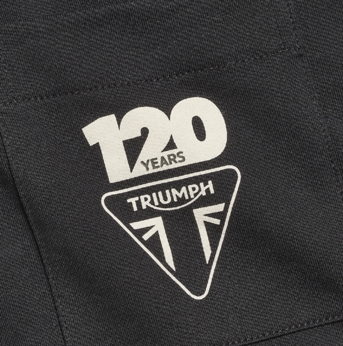 The Triumph 120 Years Black Collectors Tee is a 100% soft cotton classic fit crew neck tee featuring the Triumph 120 Years logo on the chest pocket.