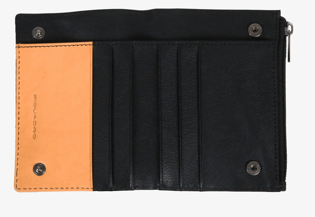 Introducing the MV Agusta Piquardo Clip Pocket Organizer, a functional and slim pocket organizer finished in a black colourway featuring multiple card slots to store all your credit cards and ID for quick access secured with a clip closure and large zippered pocket to hold all your coins in place. Made from fine quality leather and fabric to guarantee durability. Personalized with the MV Agusta logo.