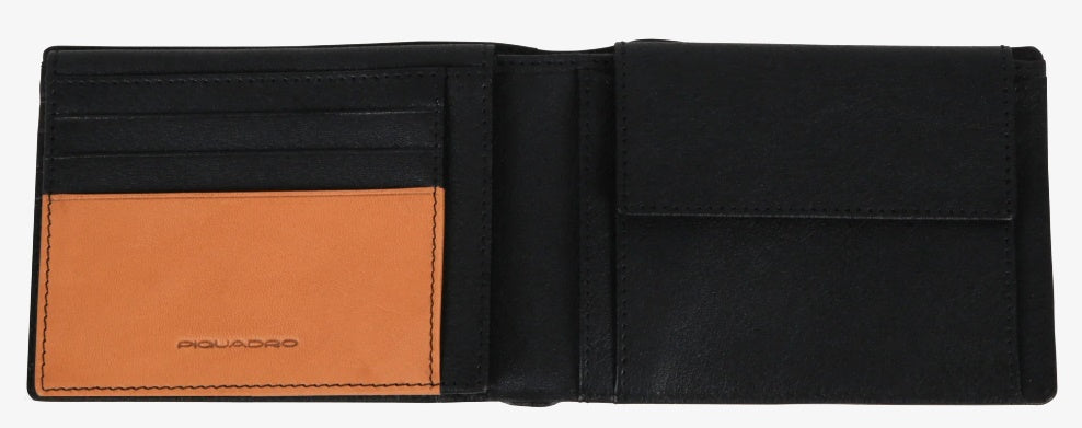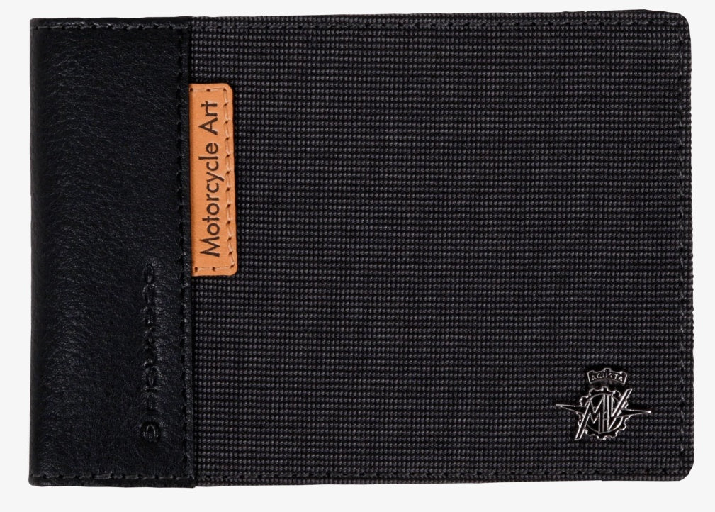 Introducing the MV Agusta Piquardo Elegante Wallet consisting of leather and Blade fabric. A functional compact wallet finished in a black colourway featuring multiple card slots to store all your credit cards and ID for quick access, a large money note compartment and a coin pocket to keep all your coins in place. The wallet is made out of tear-resistant technical fabric which is a combination of two types of different leather, vegetable-tanned full-grain calfskin and smooth, vegetable-tanned leather. Personalized with the MV Agusta logo.