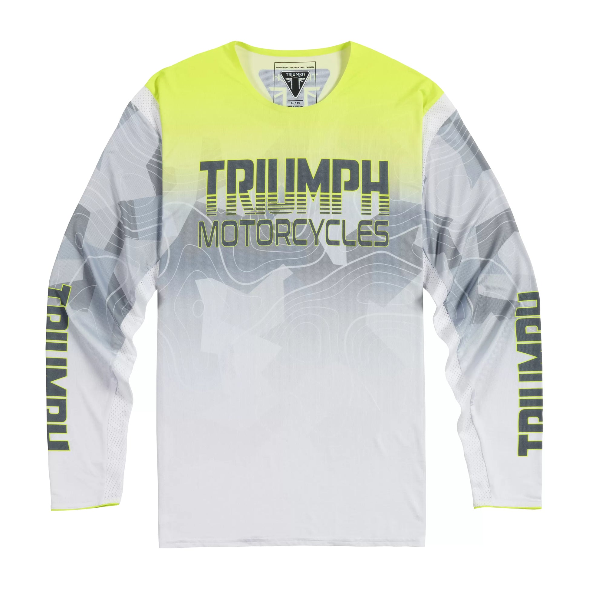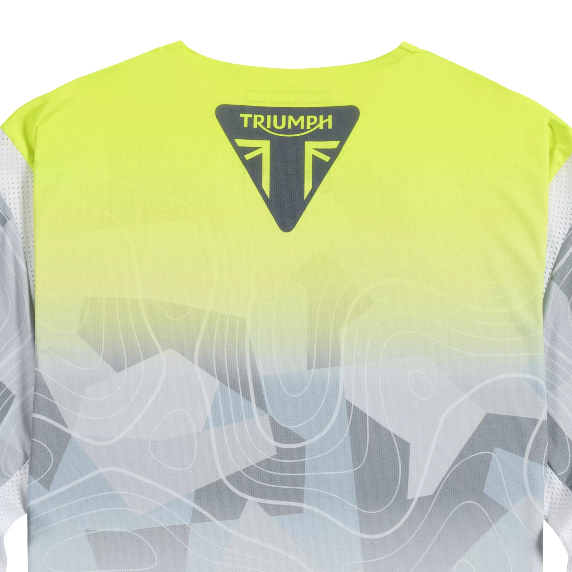 Featuring map contour lines designs throughout jersey, with Triumph Logo and graphics.