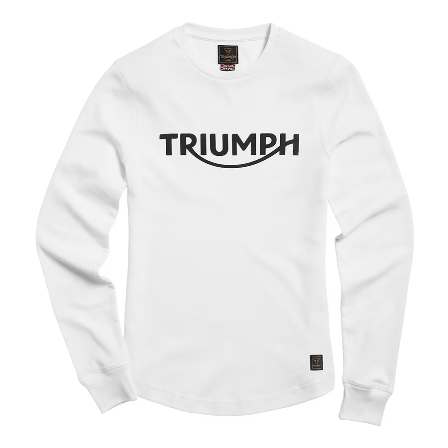 A long sleeve waffle texture cotton tee with soft pigment Triumph logo and triangle badge on the front.
